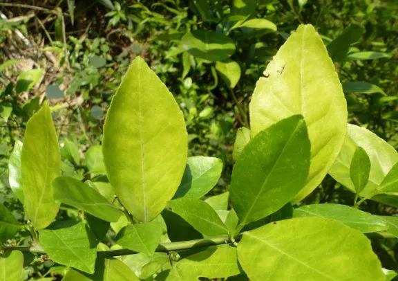 脐橙缺氮时新梢生长缓慢,叶片小而薄,叶色淡绿色至黄绿色,小枝停止生长较早。严重时叶色退绿黄化,老叶发黄,树顶部呈黄色,叶片簇生,无光泽,暗绿色。部分叶片先形成不规则绿色和黄色的杂色斑块,全叶发黄而脱落。花少而小,无叶花多,落花落果多,坐果率低。老叶有灼伤斑,果皮粗厚,果心大,果小,味酸,汁少,多渣。果实着色和成熟延迟,果实品质差,风味变淡。严重缺氮时,枝梢枯死,树势衰退,形成光秃树冠,易形成“小老树”。