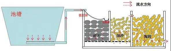 工艺流程及处理要求:主要包括养殖池塘→溢流系统—弧形筛—碎石过滤—细沙过滤—陶粒过滤+生物降解。经过以上工艺流程处理后的养殖水循环再利用或达标排放。治理后,COD、总氮、总磷等主要指标达到《淡水池塘养殖水排放要求》(SC/T 9101-2007)的,循环再利用;如需排入河湖的养殖水,其主要指标不低于受纳水体的排放标准。