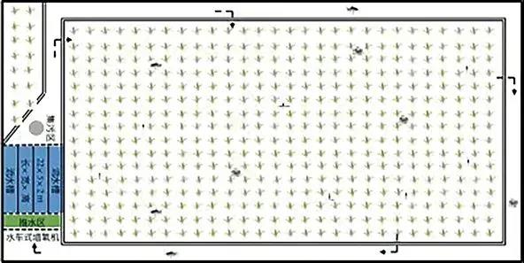 养殖尾水治理设施占比面积:每个流水槽(或相同产量的排污池塘)配套10~15亩稻田。