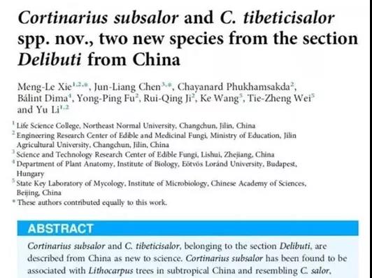 近日,李玉院士团队与庆元县食用菌科研中心在浙江省百山祖国家公园发现全球大型真菌新物种,新物种论文在国际权威期刊《PeerJ》发表。