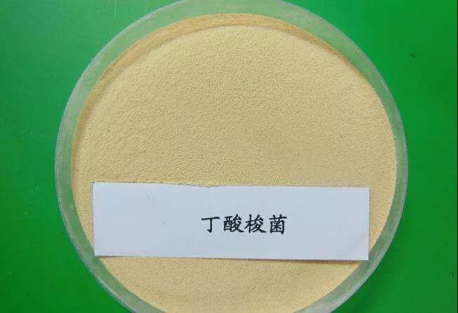 丁酸梭菌又名丁酸菌、酪酸梭菌,是1933年由日本千叶医科大学宫入近治博士首先发现并报告的,因此又名宫入菌,细菌学分类属于梭菌属,是从健康人和动物肠道中分离出的一种厌氧型革兰氏阳性芽孢杆菌,能在动物肠道内定植,并产生以丁酸和乳酸等短链脂肪酸为主要益生产物的益生菌。丁酸梭菌作为新一代芽孢益生菌制剂,较非芽孢益生菌制剂具有耐热、耐酸和耐多种抗生素等生物学特性。2009年7月,我国农业部批准了丁酸梭菌制剂在饲料中作为微生物饲料添加剂使用。丁酸梭菌作为饲料添加剂在饲料中使用,具有调控动物肠道健康等多种生物学功能,主要体现在促进肠道中有益菌(如乳酸菌、芽孢杆菌和双歧杆菌)的生长、调节动物肠道菌群平衡,稳定胃肠道功能,提高动物机体免疫应激能力,进而维持动物健康并促进其生长。丁酸梭菌作为微生态添加剂,既可作为饲料添加剂单独使用,又可与一些有益菌复配使用,起到菌群相互促进的目的。