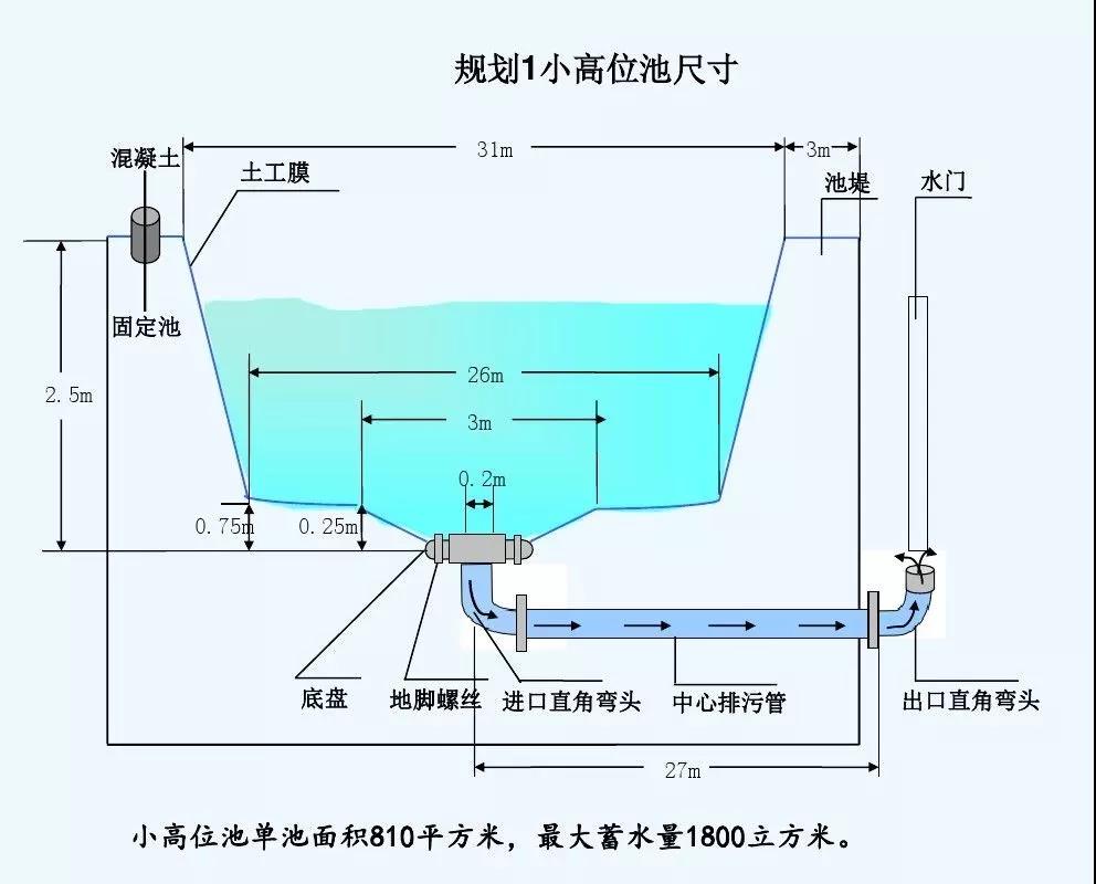 ② 蓄水池:应占养殖总面积的30%左右,以保证充足的水供应。蓄水池有出水口,以保证能完全排干池水。