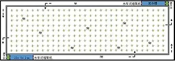 跑道式处理模式是集池塘循环流水养殖技术、生物净水技术和鱼类疾病生态防治技术于一体的新型池塘养殖模式。该模式对传统池塘进行工程化改造,将池塘分成小水体推水养殖区和大水体生态净化区,在小水体区通过增氧和推水设备,形成仿生态的常年流水环境,开展高密度养殖;在大水体区通过放养滤食性鱼类、种植水生植物、安置推水设施等,对水体进行生态净化和大小水体的循环。