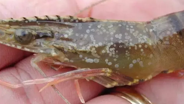 白斑病白斑大且连成片,严重的全身甲壳都有白斑,胃内空无食物,头胸甲容易剥离。有的病虾甲壳上呈多层礼花